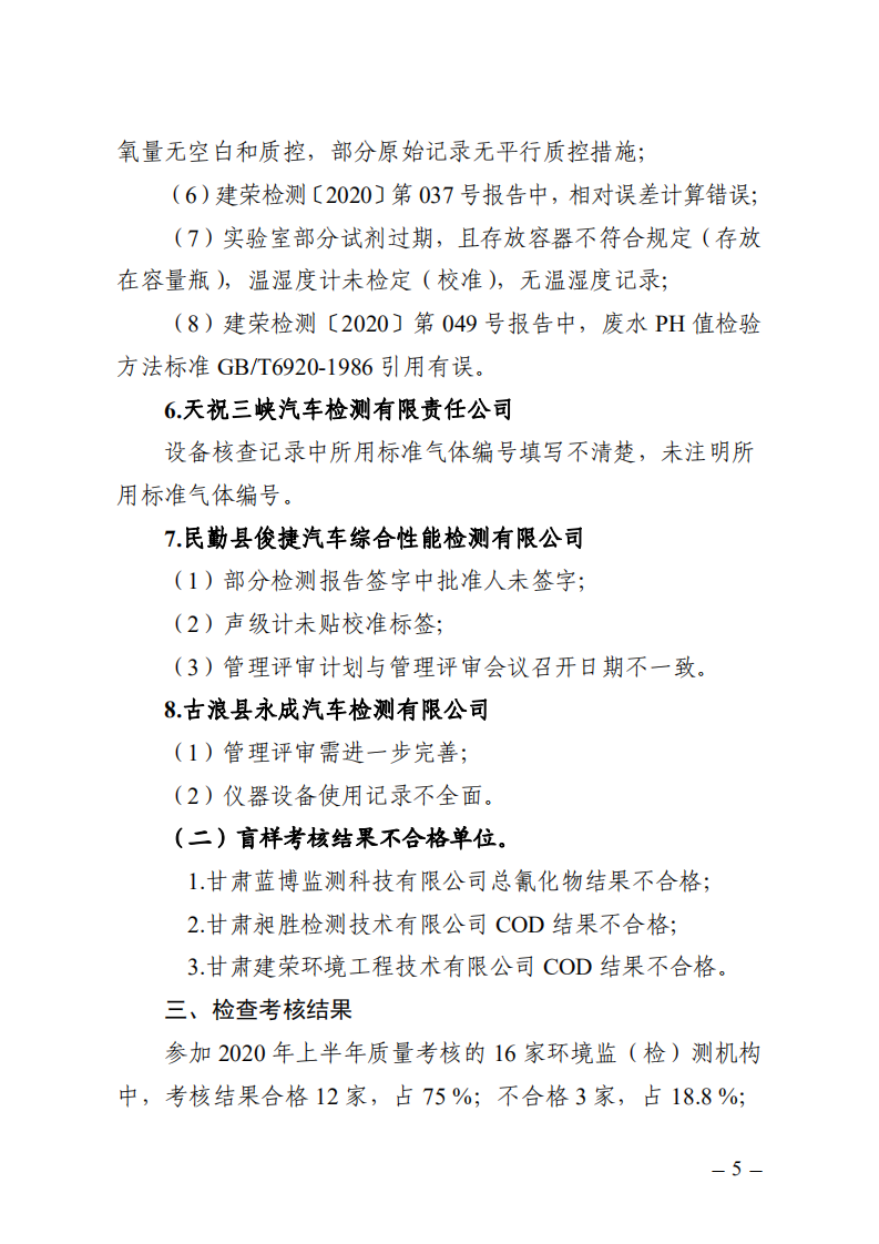 关于2020年上半年全市生态环境监(检)测数据质量专项检查情况的通报