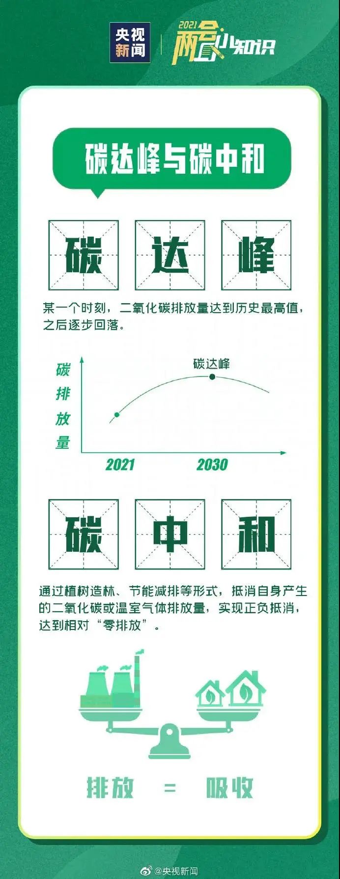 为应对气候变化,我国提出“二氧化碳排放力争于2030年前达到峰值,努力争取2060年前实现碳中和”等庄严的目标承诺。“做好碳达峰、碳中和工作”是我国2021年重点任务之一。“碳达峰”“碳中和”究竟是怎么一回事,为何要耗时40年?戳图,一起学知识↓↓↓