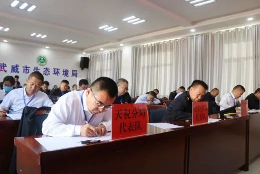 | 为坚决贯彻落实习近平总书记关于努力打造政治强、本领高、作风硬、敢担当,特别能吃苦、特别能战斗、特别能奉献的生态环境保护铁军的指示要求,按照干部能力提升年活动和省生态环境厅、省总工会2022年全省生态环境保护执法大练兵活动方案的要求,进一步提高全市生态环境执法和监测能力规范化、专业化水平,检验全市生态环境系统行政执法和监测技能。2022年9月20日至21日,武威市举办了全市生态环境执法和监测技能比武竞赛活动,活动分理论测试、现场实操、案卷评查等环节,通过初赛选拔,来自全市生态环境系统的9支参赛队伍共27名执法骨干和监测人员参加了本次比武竞赛。