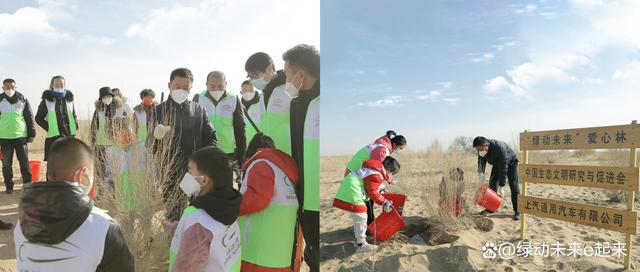 2022年12月24日,由上汽通用汽车和中国生态文明研究与促进会以及武威市环境保护产业协会联合发起的“绿动未来”环保公益平台,发动甘肃当地的志愿者,携手治沙英雄、“全国劳动模范”石述柱的传人,在甘肃民勤县腾格里沙漠种下10,000余棵梭梭树,落成又一片“绿动未来爱心林”。