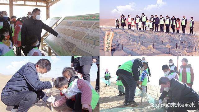 为弘扬民勤防沙治沙精神,鼓励公众参与助力当地生态持续改善,2022年12月24日,十余组甘肃当地志愿者,在武威市环境保护产业协会和“绿动未来”平台的带领下,前往腾格里沙漠。大家与治沙英雄石述柱之子石光明一起,探视并养护了“绿动未来”民勤1号林,近距离观摩学习了“民勤模式”科学治沙技术,并将所学转化为切实的植树成果,携手在腾格里沙漠再植10,000余棵梭梭树苗,落成又一片“绿动未来”爱心林。