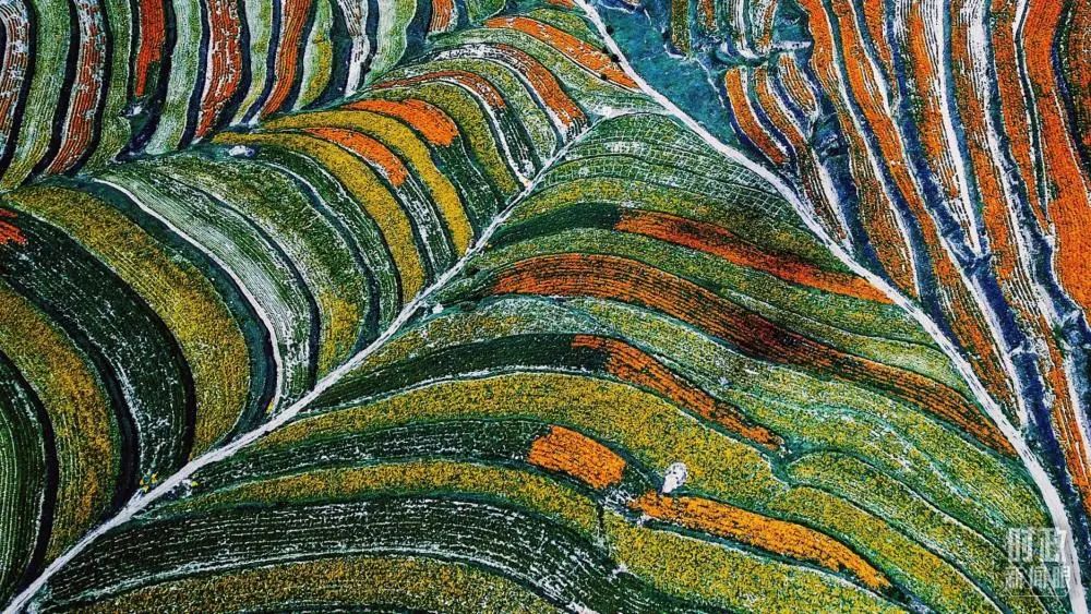 宁夏彭阳县。万寿菊与格桑花盛开在错落的山间梯田上。(总台国广记者李晋拍摄)