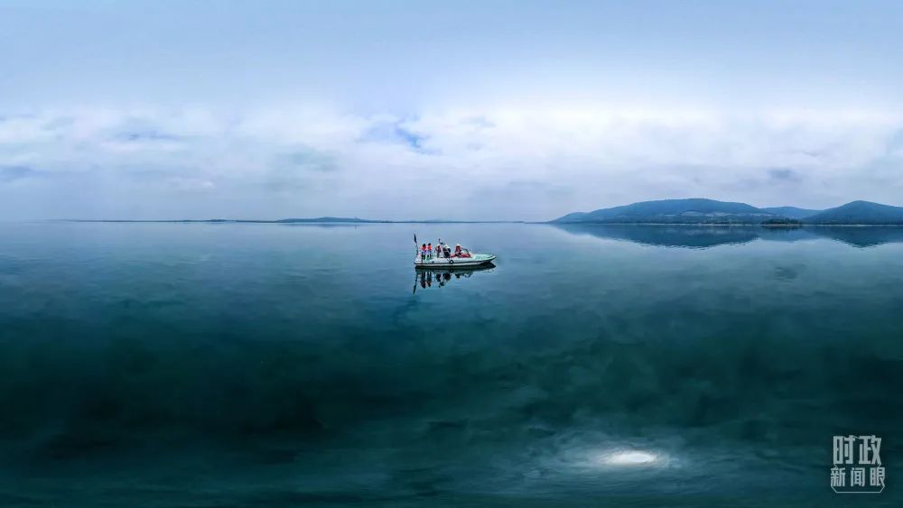 丹江口水库,工作人员正在采集水样。(总台国广记者李晋拍摄)