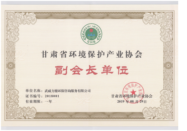 《甘肃省清洁生产审核咨询机构服务能力评价证书》甲级,(证书编号:GHQJSC-2019-006号)、《甘肃省建设项目环境监理能力评价证书》(GHJ-2019-004号)、《甘肃省环境污染治理工程服务能力评价证书》甲级(证书编号GHGC-2020-021)。